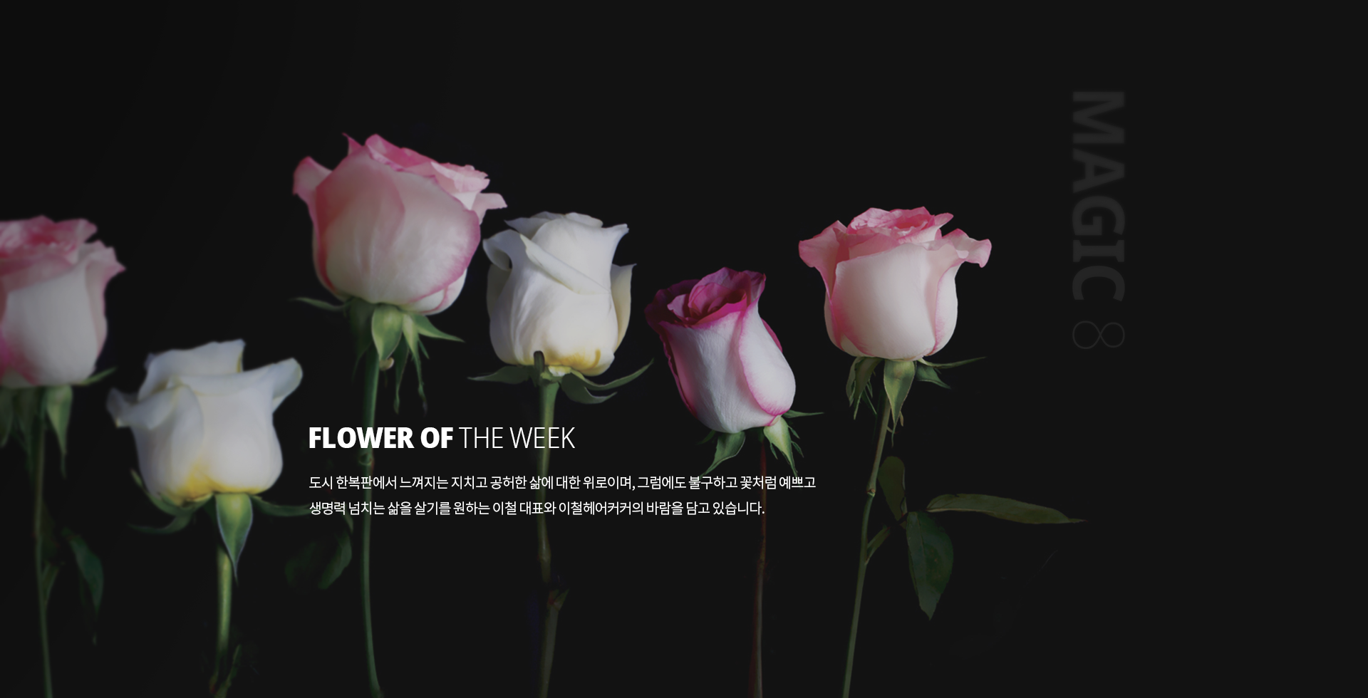 직접 셀렉한 생화가 매장에 배송되어 동일하게 D/P 되는 플라워오브위크 등 매장의 통일성을 위한 8가지 이철헤어커커만의 문화를